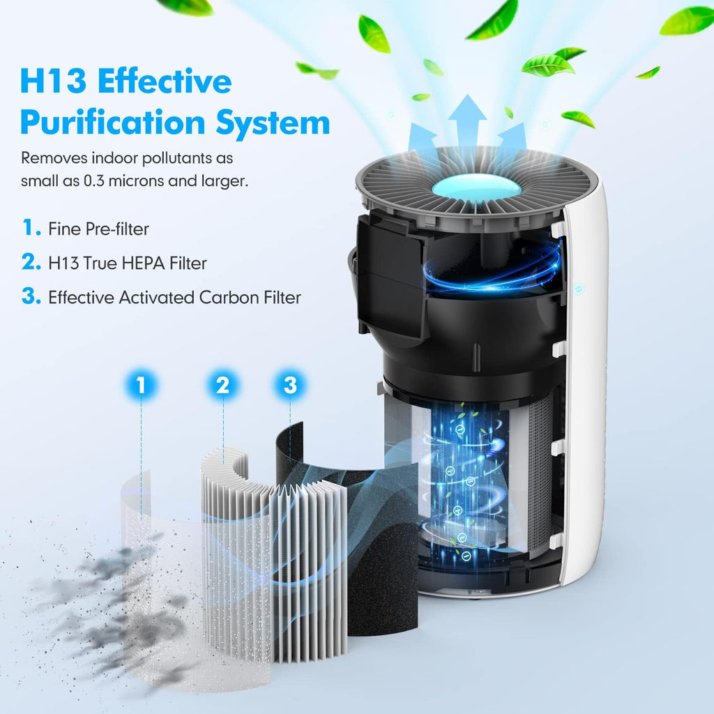 - Three filters for refreshment: H13 true HEPA, fine preliminary, and activated carbon filters reduce unwanted odors in your living spaces. Perfect for anyone wanting to improve air quality.