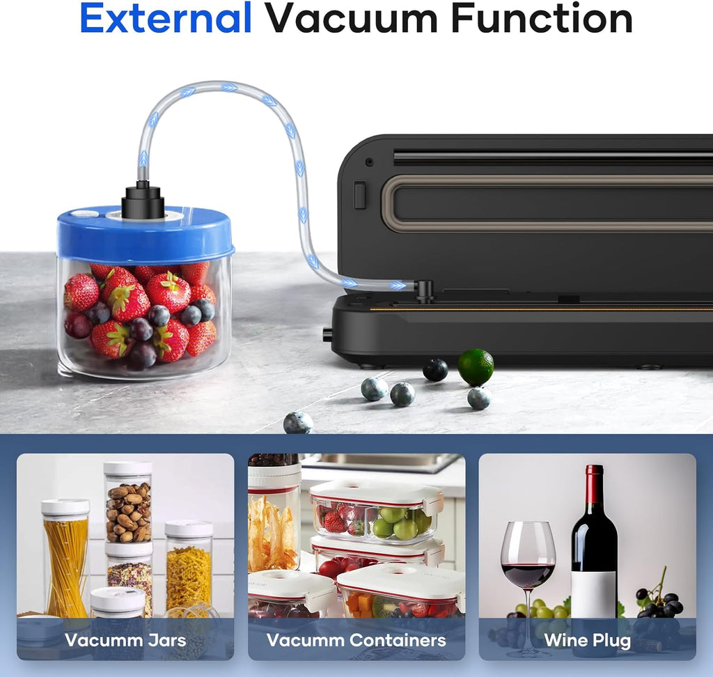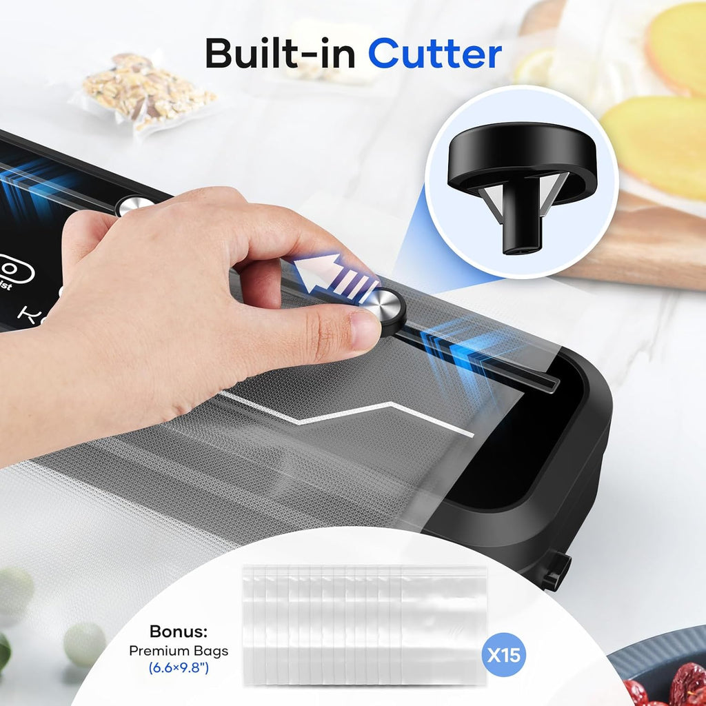 - 🛡️ 【Safety Built-In + Versatile Kitchen Powerhouse】Seal worry-free with auto-shutoff protection. Create custom bag sizes instantly with the built-in cutter (scissors not needed!). Preserve mason jar ferments, sous-vide meals, or even wine bottles using the vacuum hose. Dishwasher-safe parts make cleanup zero hassle.