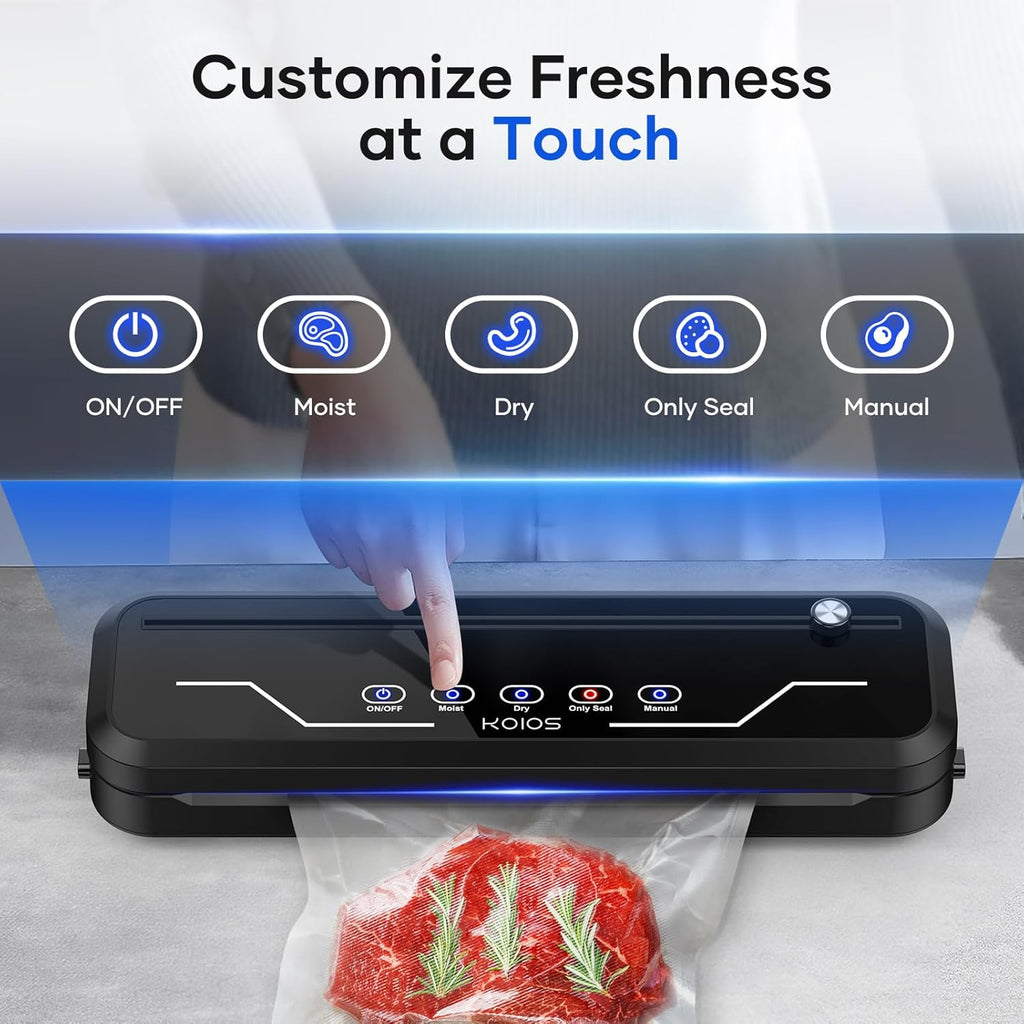 - ⚡ 【Effortless Pro Results - Even for Beginners】Seal like a chef, easily! The intuitive touchscreen with color-coded LEDs guides you step-by-step. The slide-out drip tray catches messy juices – just wipe clean. Sleek vertical design (14.8") tucks neatly into tight spaces, while its metallic finish elevates your countertop. Sophistication made simple.